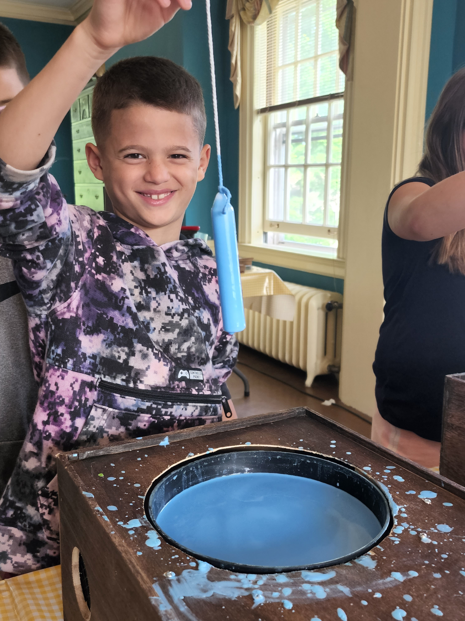 Students can learn about a colonial child’s chore of candle dipping, how many candles were needed for a household and how they were made before taking turns dipping their own to take home.